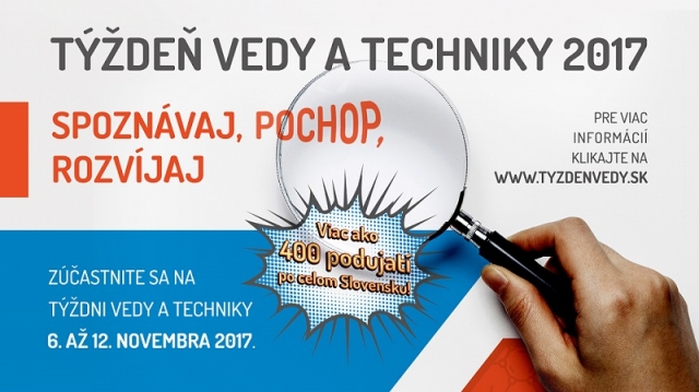 Týždeň vedy a techniky na Slovensku Aj tento rok sa 6. až 12. novembra na Slovensku bude konať vedecko-popularizačné podujatie Týždeň vedy a techniky. Mottom tohto ročníka je ´Spoznávaj, pochop, rozvíjaj´. Budete tak mať možnosť bližšie spoznávať a pochopiť vedu a ďalej rozvíjať váš záujem o...